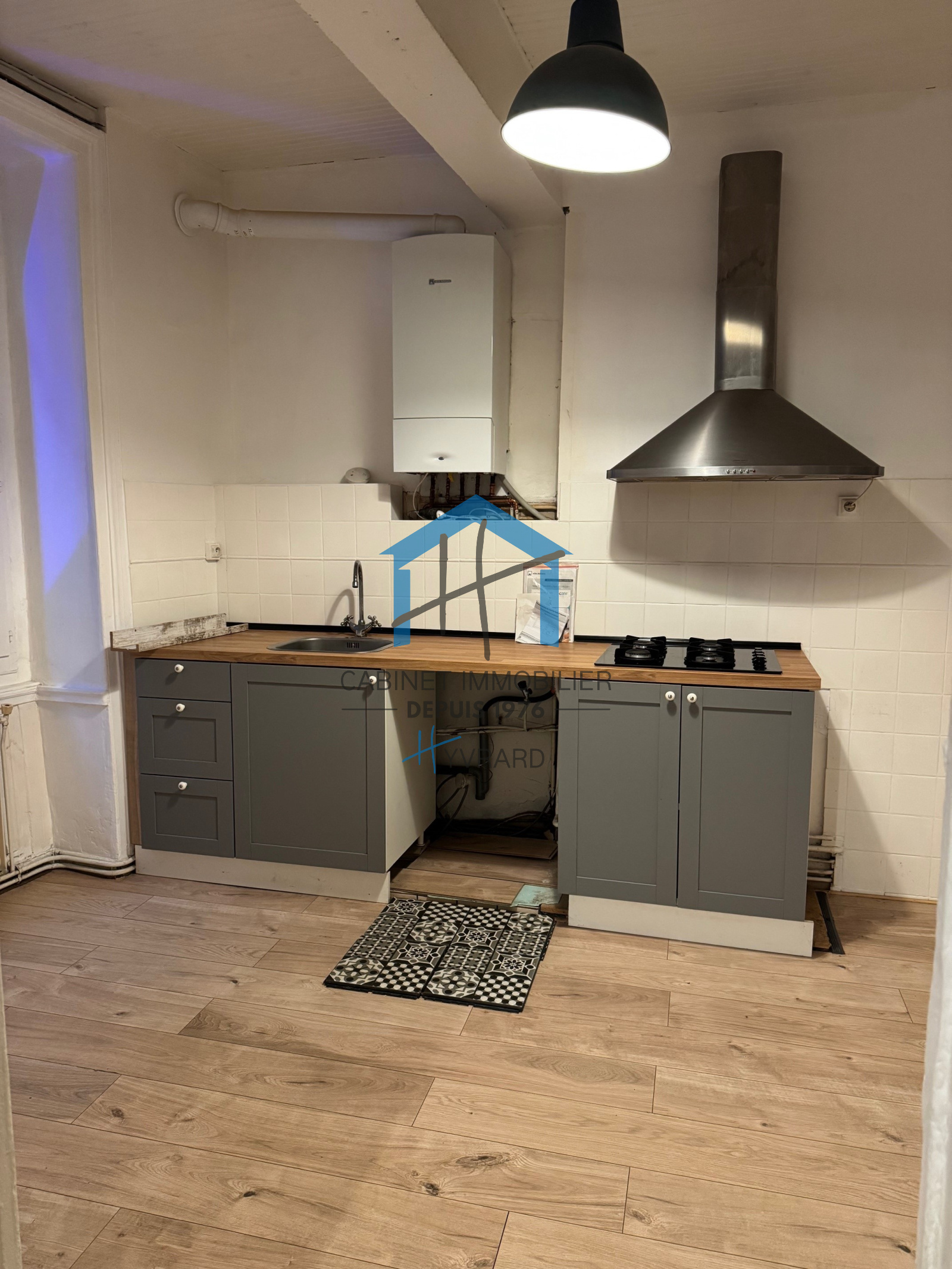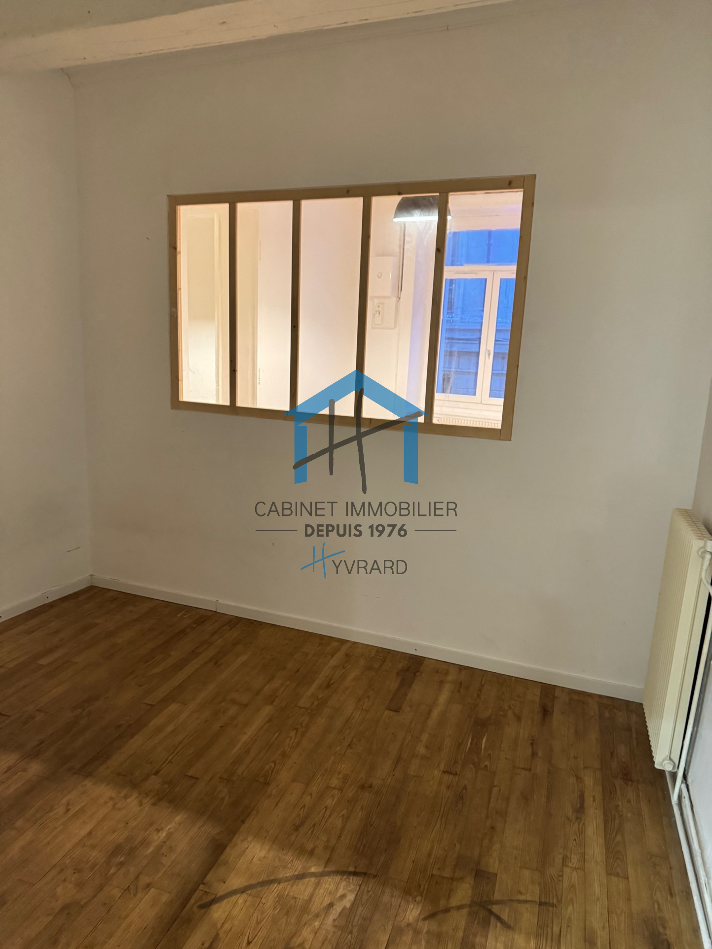 Composition : Un hall d’entrée , un WC séparé avec lave main, une salle d’eau avec douche et branchement de machine à laver , un grand séjour-salon , une cuisine meublée séparée ( plaque et hotte ) , une grande chambre , un espace bureau .