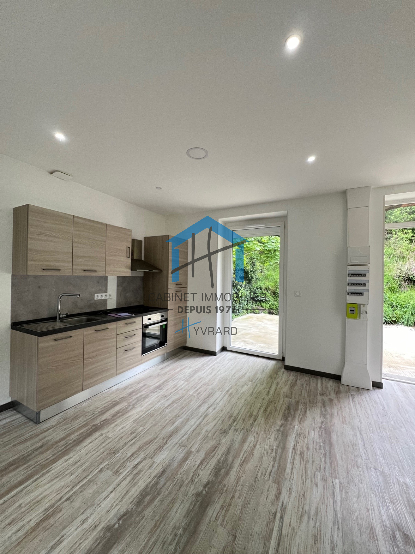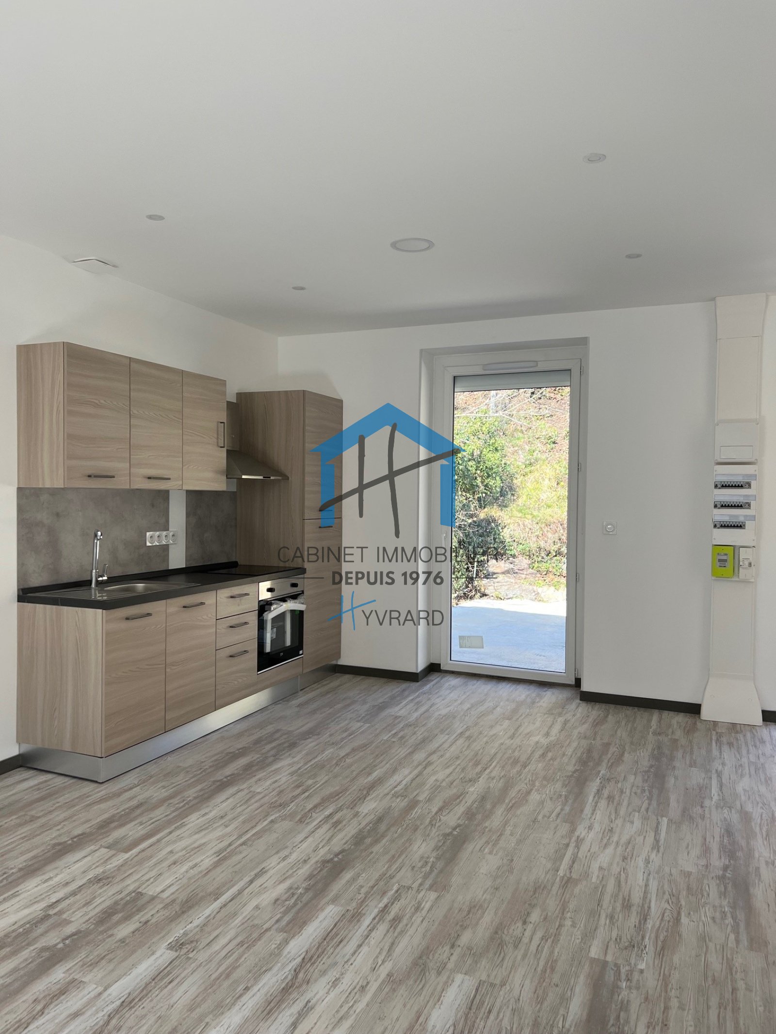 Composition : Un Hall d'entrée avec placard, une cuisine équipée ( plaque, four , hotte , frigo ) ouverte sur séjour-salon , deux chambres avec placards aménagés , une salle d'eau avec douche à l'italienne et un coin buanderie , un WC séparé , une place de parking privative dans garage commun .
