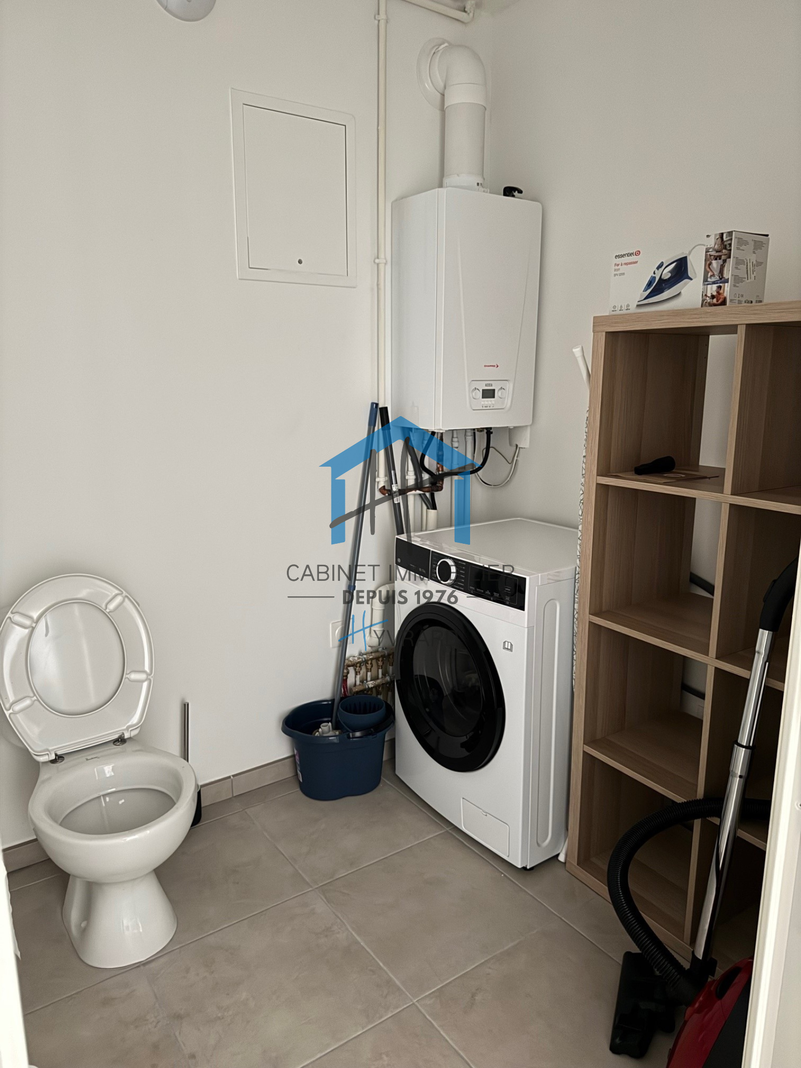 Composition : Hall d'entrée , Cuisine équipée ( plaque , four , hotte , lave vaisselle ) ouverte sur séjour -salon ( table et chaises ) avec accès terrasse , un couloir avec rangement desservant deux chambres ( lit compris ) dont une avec rangement , une salle d'eau avec douche , un WC avec un espace pour la machine à laver et chaudière individuelle gaz neuve , menuiseries isolantes , fibre optique .