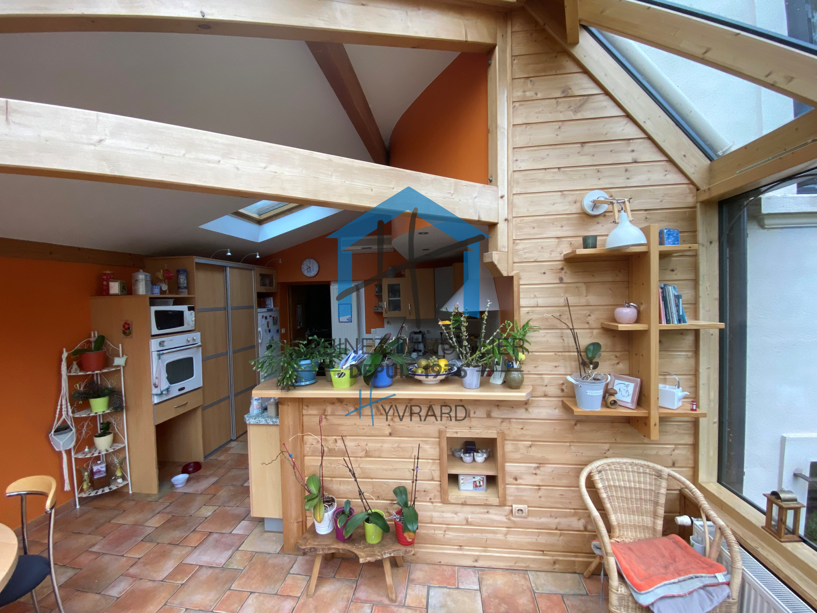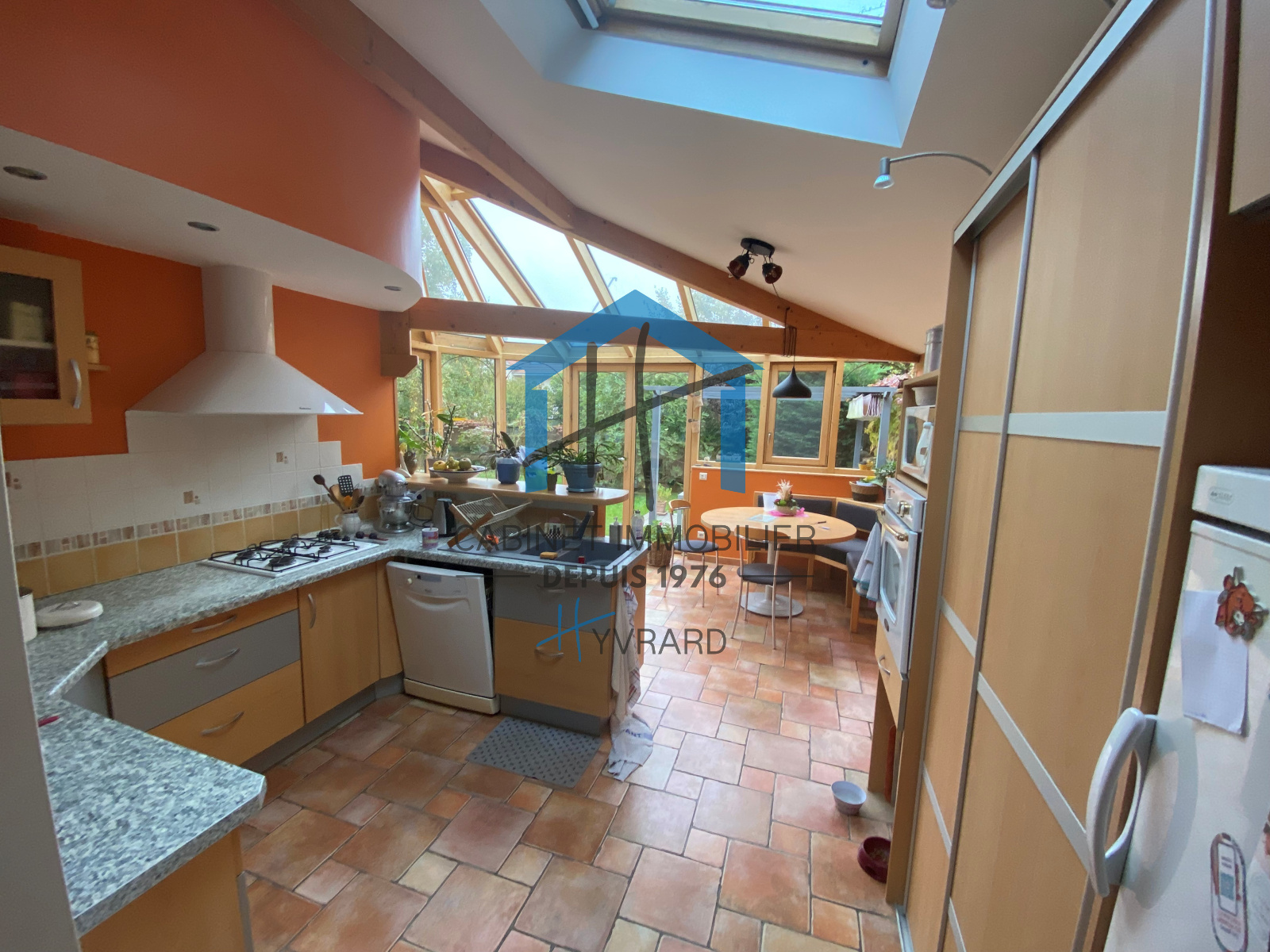 Vous trouverez en rez de chaussée une spacieuse entrée avec placard, des toilettes avec lave-mains, une cuisine avec coin repas dans la véranda qui apporte une belle luminosité à la pièce avec un accès direct à une terrasse en bois et au jardin.