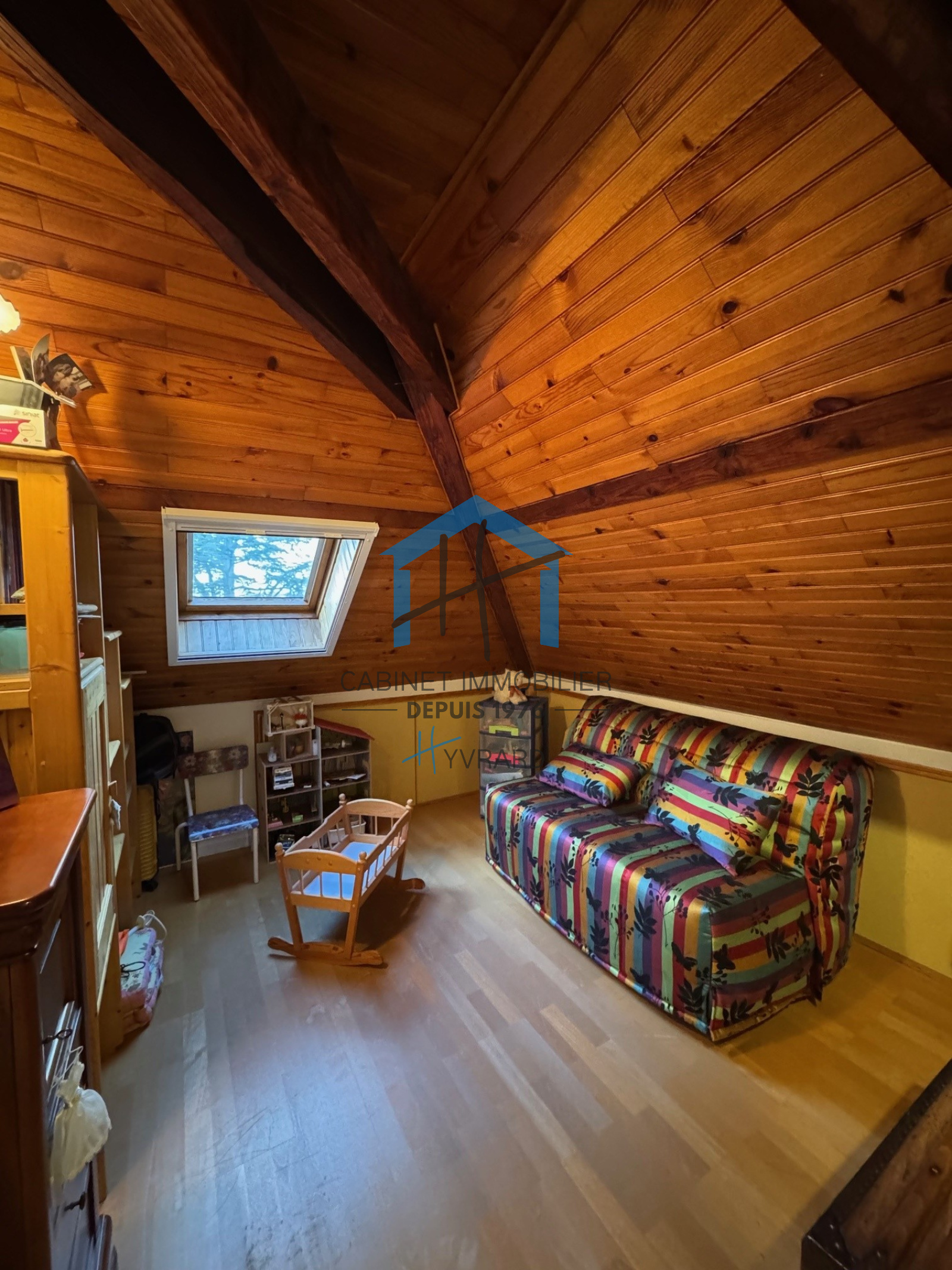 L’étage mansardé dispose d’une mezzanine, une salle d’eau des toilettes et 2 chambres avec placard.
