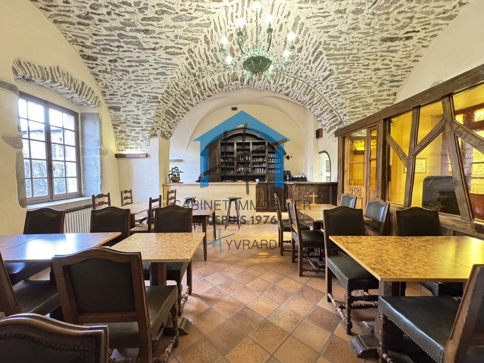 Au rez-de-chaussée partie droite vous découvrirez un bar avec une première salle de restaurant entièrement rénovée chaleureuse et typique, idéal pour les amateurs de gastronomie, elle dispose d'une cave en sous-sol.
